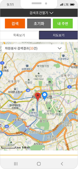 - 지역 설정 또는 GPS 기반으로 추천 봉사활동 표시