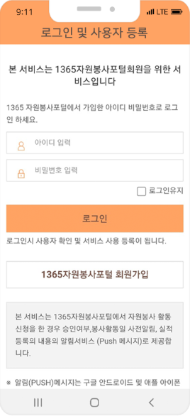 1단계. 1365 자원봉사 포털 앱 설치 및 로그인