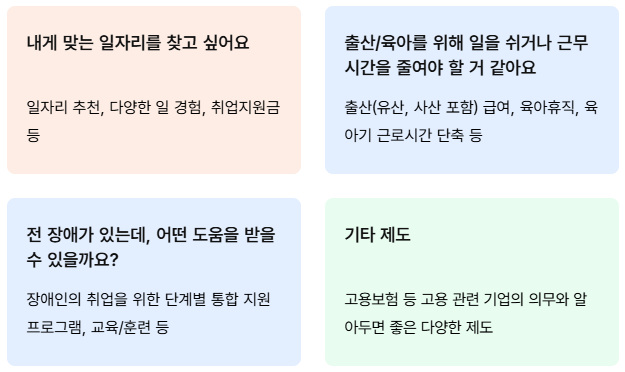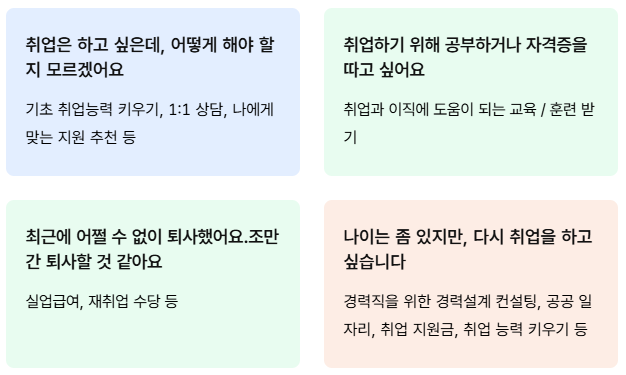 - 청년, 중장년, 여성, 장애인 맞춤형 일자리 정보 제공