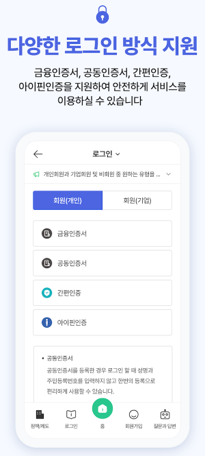 - [회원가입] 클릭 본인인증(휴대폰/공동인증서)