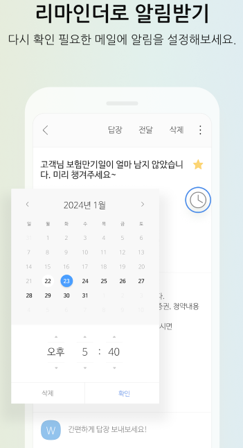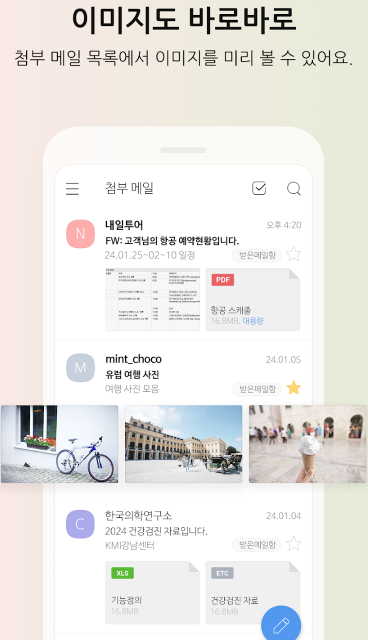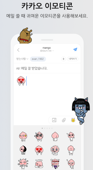 앱 하나로 모든 메일 관리 끝! Daum 메일 뿐 아니라 네이버, 구글 메일까지 연결해 쓸 수 있습니다! 지금 바로 설치해 보세요.