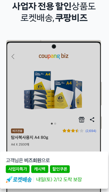 다양한 상품, 저렴한 가격, 풍성한 혜택에 당일 배송까지, 편리한 쿠팡앱으로 즐거운 모바일 쇼핑을 경험하세요.