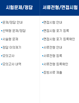 - 기출문제 다운로드, 접수 내역 확인, 고사장 출력, 합격자 확인까지 모두 가능