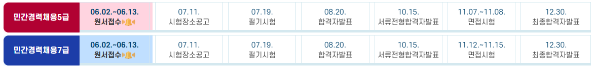 - 공고일, 접수기간, 시험일, 합격자 발표일까지 전부 확인 가능