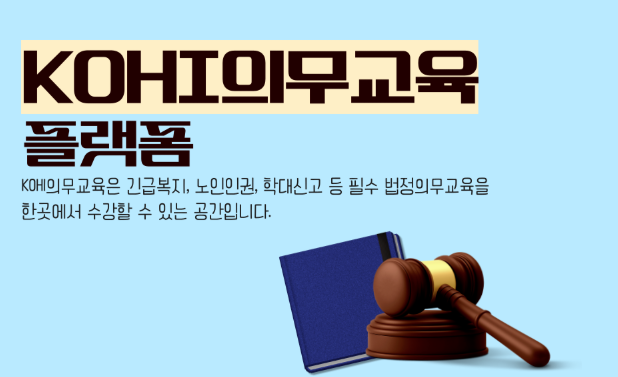 - kohi 의무교육 온라인수강은 보건복지 관련 종사자에게 필수입니다.