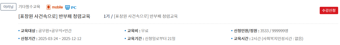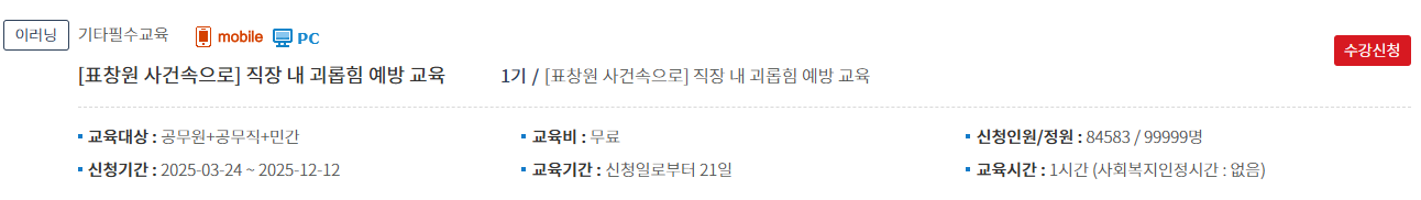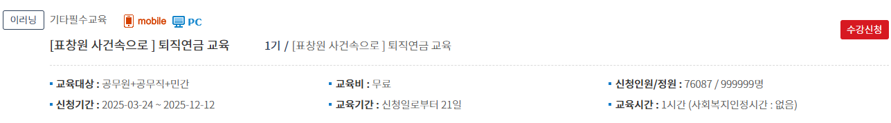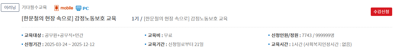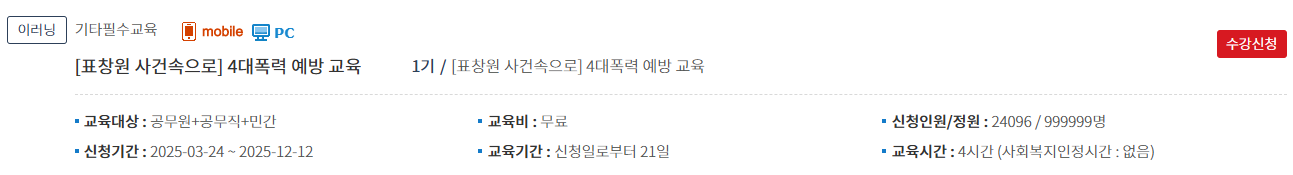 - 커리어 유지 및 승진에 필수: 대부분 기관은 채용이나 재계약, 평가에서 의무교육 수료 여부를 확인하기 때문에 반드시 필요합니다.