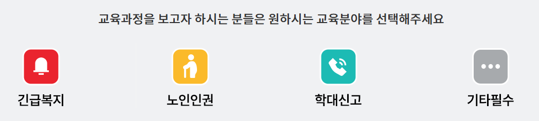 상단 검색창에 의무교육 또는 해당 직군(예: 요양보호사)을 입력하면 관련 과정이 뜹니다. - 교육과정 선택 후 신청하기 클릭